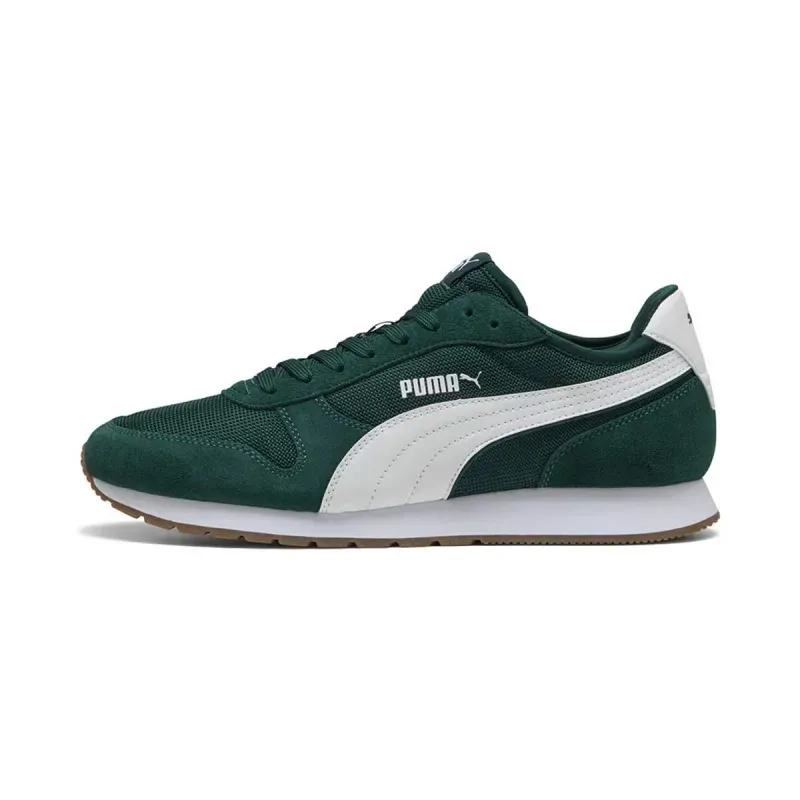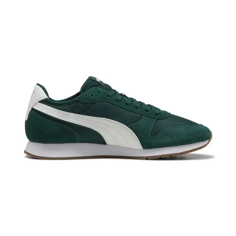 Tenis Puma ST Miler para hombre, en color verde oscuro/blanco/goma. Tenis de estilo urbano con un diseño deportivo.
