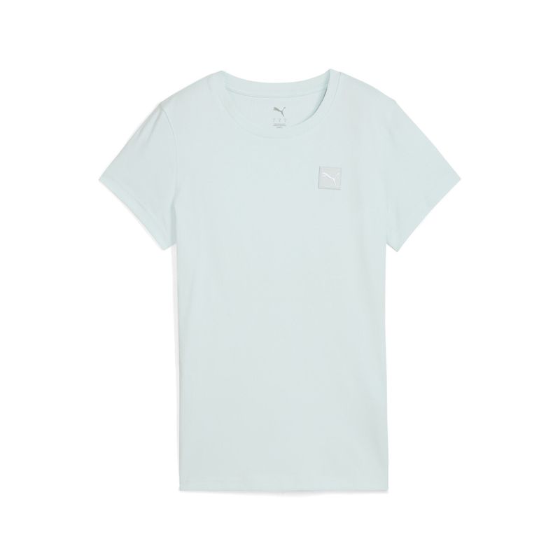 playera de manga corta puma ess elevated teal para mujer. agrega un toque de estilo a cualquier atuendo con esta camiseta con el logotipo del gato de puma bordado. perfecta para cualquier ocasión, combina de forma natural comodidad y estilo, convirtiéndose en la prenda perfecta para un look casual pero elegante.