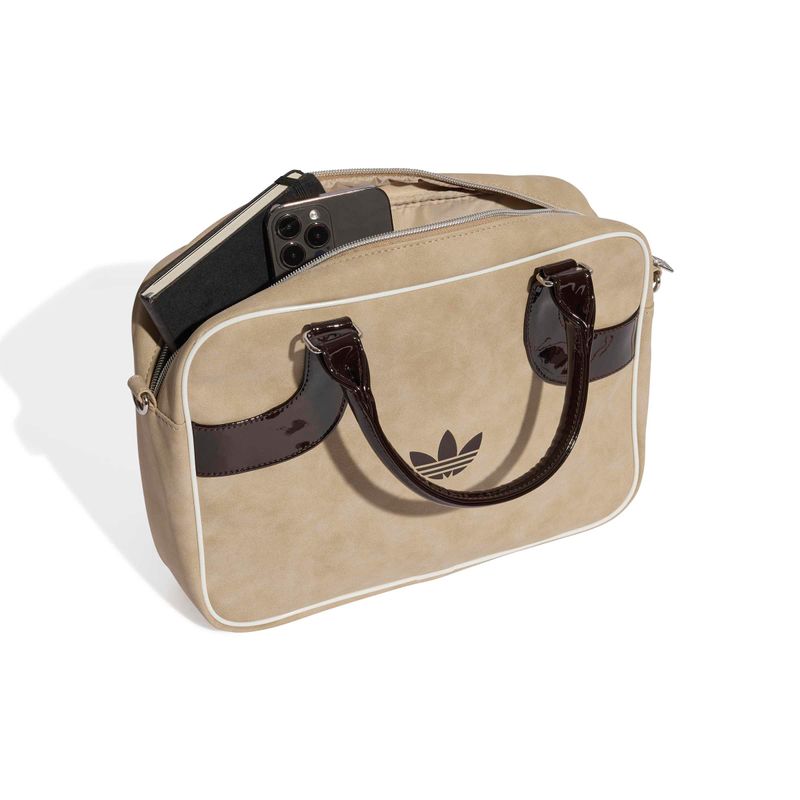 la mezcla de pieles sintéticas le da a esta bandolera adidas mediana un estilo moderno con aire retro. sus múltiples bolsillos interiores y exteriores te ayudan a mantener todo organizado y a mano.