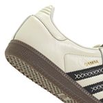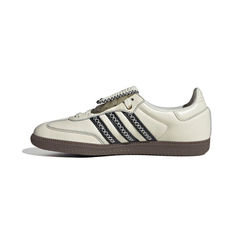 haz un viaje en el tiempo con esta zapatilla adidas. la adidas samba vuelve a sus inicios y muestra su exclusiva herencia en el fútbol con este look retro inspirado en el terreno de juego. con un diseño inspirado en las botas de fútbol de los años 50 sacadas de los archivos, tienen una lengüeta plegable y detalles de ojales. la parte superior de suave piel granulada, el diseño de perfil bajo y la clásica suela de goma color caramelo se mantienen fieles al original.
