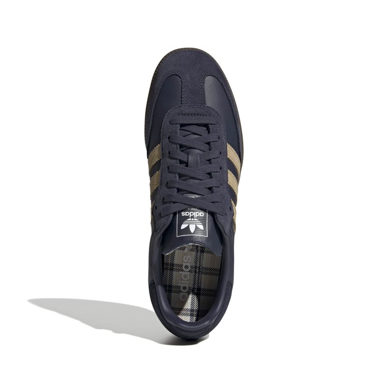 la zapatilla adidas samba ha dejado su huella a lo largo de los años desde 1950. memorable, en los campos de fútbol y en los parques de skate. en esta versión, el empeine de piel se completa con refuerzos de ante y detalles gráficos inspirados en el tartán de la plantilla y el bucle de la lengüeta.